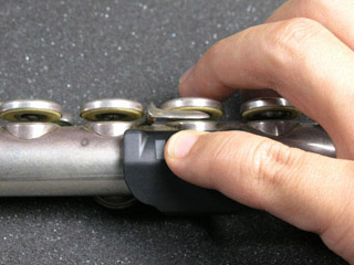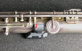 下圖紅線部分指示如果當成左小指的輔助器,為避免與G鍵尾衝突,可以切去一塊。